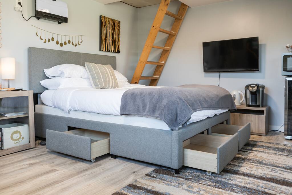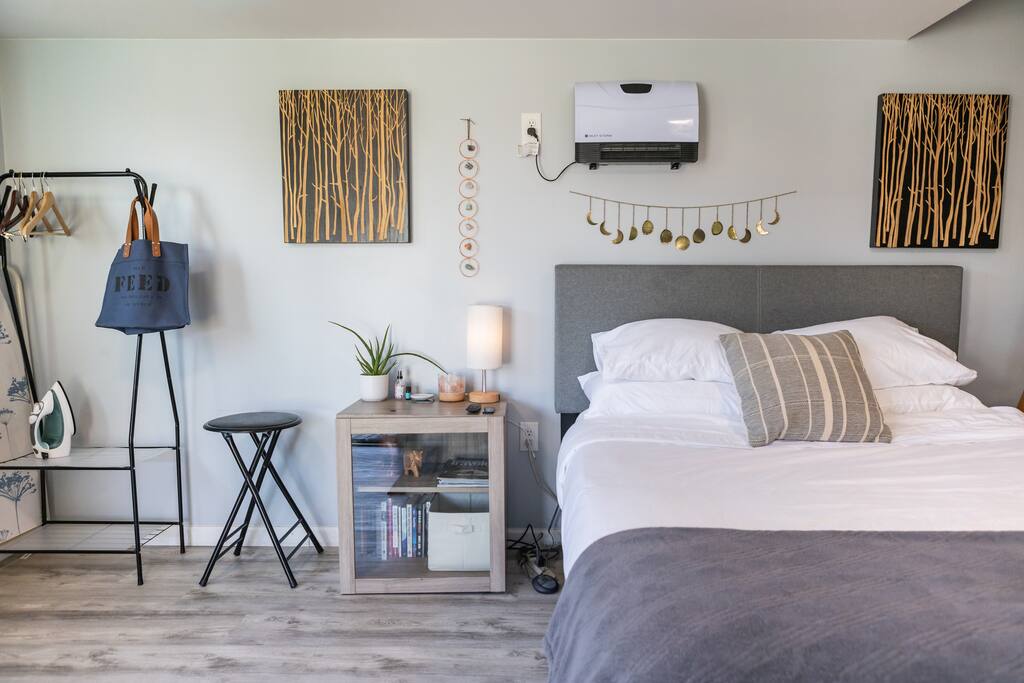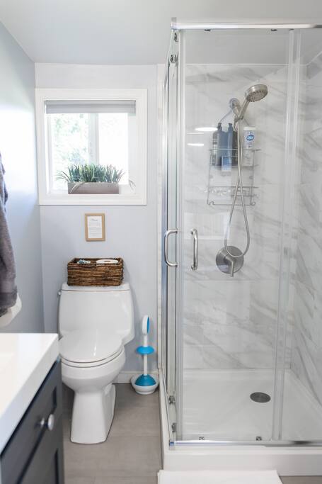 Our property boasts a functional design that includes storage space under the bed and hooks for added convenience. And for those chilly nights, our heater and electric mattress cover provides extra warmth, making for a cozy and comfortable sleep. We know how important a good night's rest is, which is why we've invested in 100% cotton, luxury sheets with a high thread count. You'll love sinking into our plush bedding and waking up refreshed and rejuvenated. And if you're looking to enjoy some time by the lake, our property is in close proximity to Lake Sammamish State Park. With exceptional attention to detail and a commitment to providing top-notch service, our Airbnb listing is the perfect choice for travelers for leisure or business travel. Book your stay today and experience the ultimate in luxury, comfort, and convenience in beautiful Bellevue! Our guesthouse is about 200 sq ft in space located in our backyard. It has a queen size bed, desk, tv stand and 3/4 bathroom with HEATED FLOORS