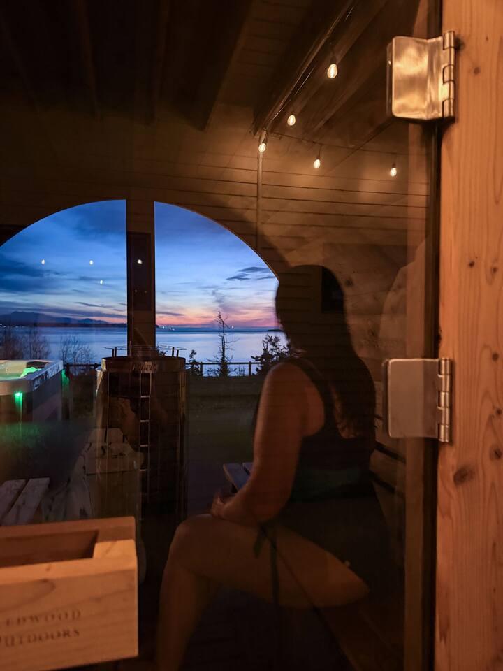 The view hits you as soon as you open the front door and it’s AMAZING! I could’ve spent a few more days here enjoying the hot tub, sauna and chef’s kitchen. The house has everything you need (and more) to appreciate and relax in this pristine space. Ferry to Port Townsend is very close for a day trip. Driving distance for fun trips to the rest of this beautiful island. We will be back!